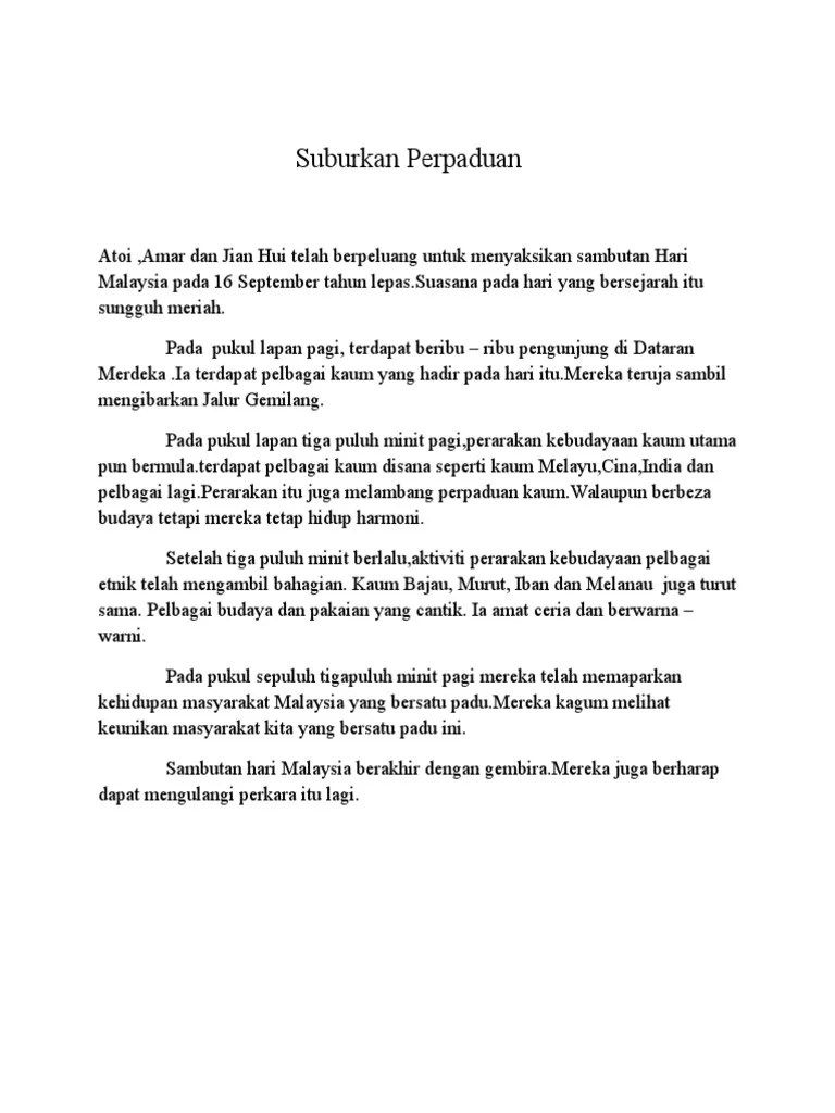 Karangan Tentang Perpaduan Spm / Suburkan Perpaduan Pdf
